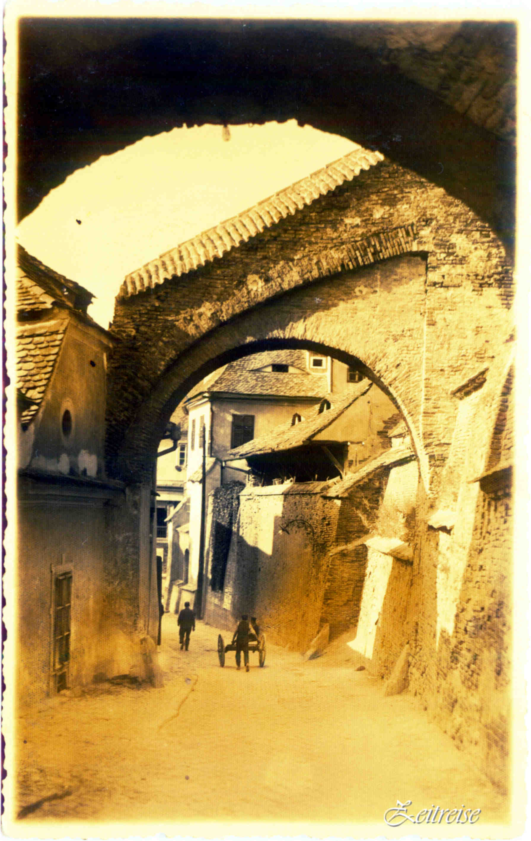 Pasajul Scărilor – anii ’30 – Carte Postală, text verso: Sibiu – Hermannstadt, Str. Pempflinger-Gasse – Fot. orig. E. Fischer, Sibiu