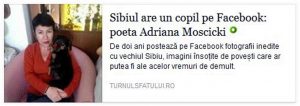 Călătorie ~ 2016, Călătorie în timp/ Zeitreise/ Időutazás 2016-01-19 / multumim Danielei Solomon si ziarului „Turnul Sfatului! Sibiul are un copil pe Facebook: poeta Adriana Moscicki 1