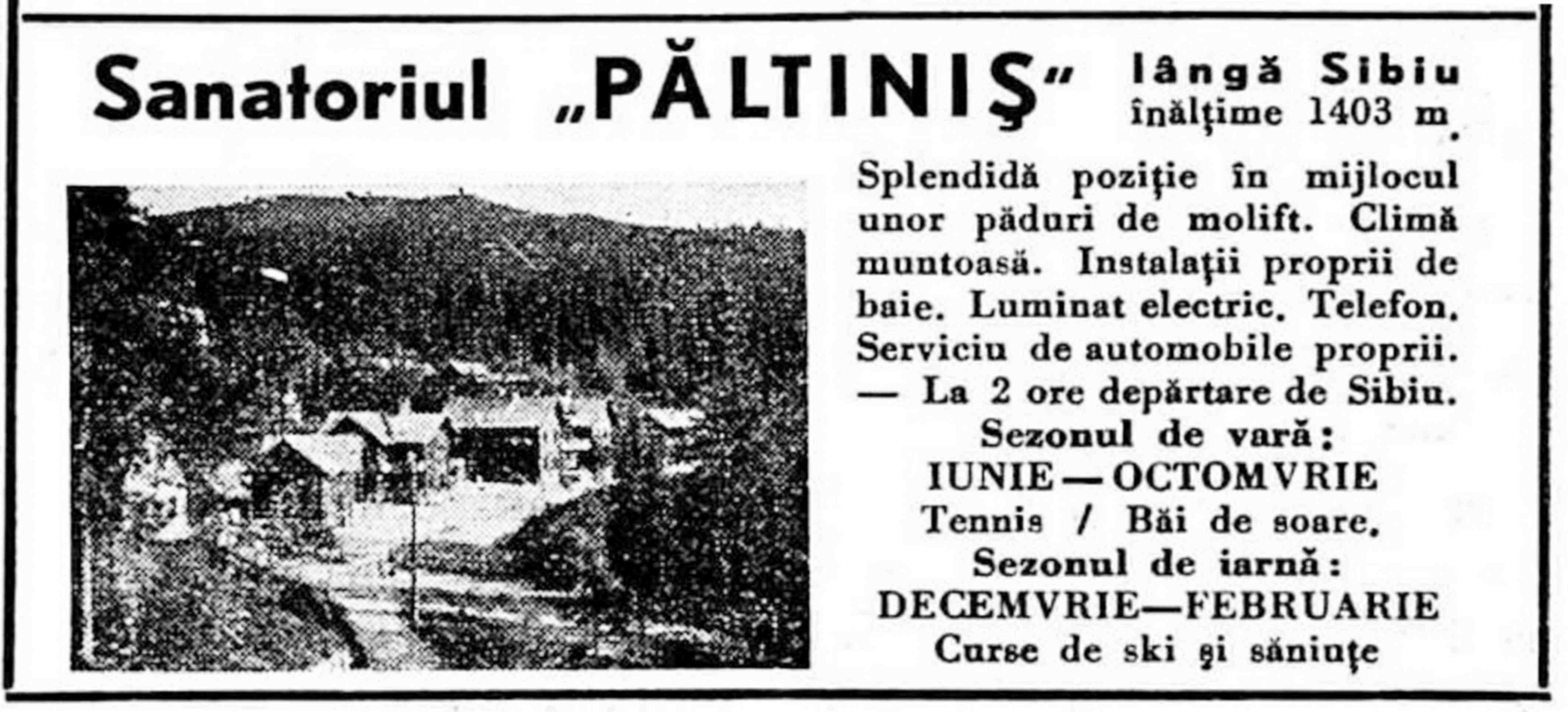 Staţiunea presupune un scop terapeutic, de îngrijire şi însănătoşire. Cum treaba săsească este temeinică şi se face „fix“, o staţiune construită după modelele europene ale vremii presupunea şi existenţa unui sanatoriu dotat cu personal de specialitate şi aparatură modernă. A existat un Sanatoriu de cură în Păltiniş care a funcţionat după reguli europene şi cu tratamente inovatoare pentru perioada respectivă.