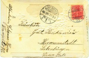 Între cărţile poştale colorate şi îngălbenite, sub cerneala neagră a tocului ce a scrijelit hîrtia, se adună poveşti nespuse. Chiar existenţa lor este istorie. Nu ştiu dacă Grete a mers mîndră cu un Mărţişor în piept, dar ştiu că altfel de amulete au călătorit din depărtări spre ea: o bomboană de zahăr întinsă pe hîrtie, un bănuţ înverzit de vreme. Sînt Cărţi poştale rare. Cît m-am străduit să le aflu povestea şi n-am reuşit! Doar contextul istoric m-a învăţat că, între 1860 şi 1914 producţia de cărţi poştale / imagini, este influenţată de doi factori: evoluţia tehnicii tipografice (apariţia cromolitografiei) şi dezvoltarea capitalismului industrial. Pe piaţă apar produse noi care trebuie promovate către consumatori. Suportul de hîrtie este şi Cartea Poştală care face reclamă şi se editează în serii scurte cu susţinerea marilor magazine sau firme.