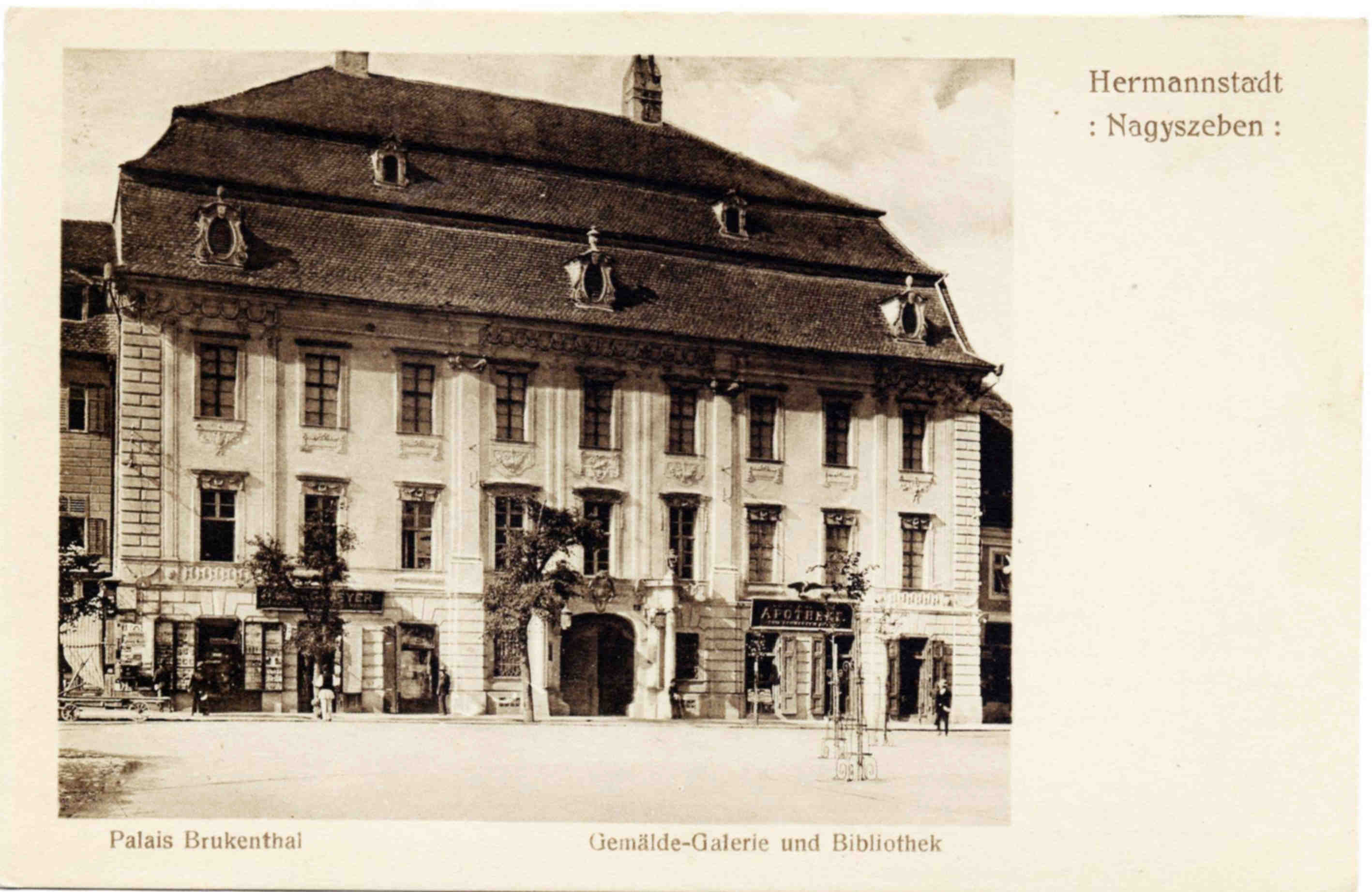 În 1790 farmacia este cumpărată de familia Müller în a cărei posesie va rămâne timp de 159 de ani. În 1899 Carl Müller îşi mută farmacia la parterul Palatului Brukenthal unde va rămâne până în 1949 când este naţionalizată.“ (sursa text: www.patrimoniu.sibiu.ro)