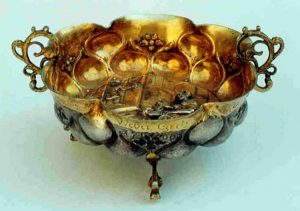 Apogeul artei îl atinge Sebastian Hann (1644 – 1713). S-au scris cărţi şi doctorate despre arta şi istoria lui, cuvintele mele ar fi prea simple şi neştiutoare. Las doar privirii şi inimii dreptul la judecată! Adevărat, prin muzee, obiectele de artă aplicată stau îngrămădite în rafturi, uneori sîntem prea obosiţi, prea plictisiţi, ori bombardaţi cu informaţie că nu mai putem asimila… Dar, de veţi lua răgaz pentru o clipă, să priviţi: emailate ori răsucite în fir de filigran, ori bătute în pietre, în alt-relief sculptate, toate sînt poveşti în metal întru veşnicie şi frumuseţe. Dragă inimii mele este una în mod special. Ca admiratoare a lui Dürer am fost fericită că Muzeul Bruckenthal a fost inspirat şi a asociat model şi obiect: gravura rinocerului făcută de Dürer şi cupa în corn de rinocer şi aur făurită de Sebastian Hann.