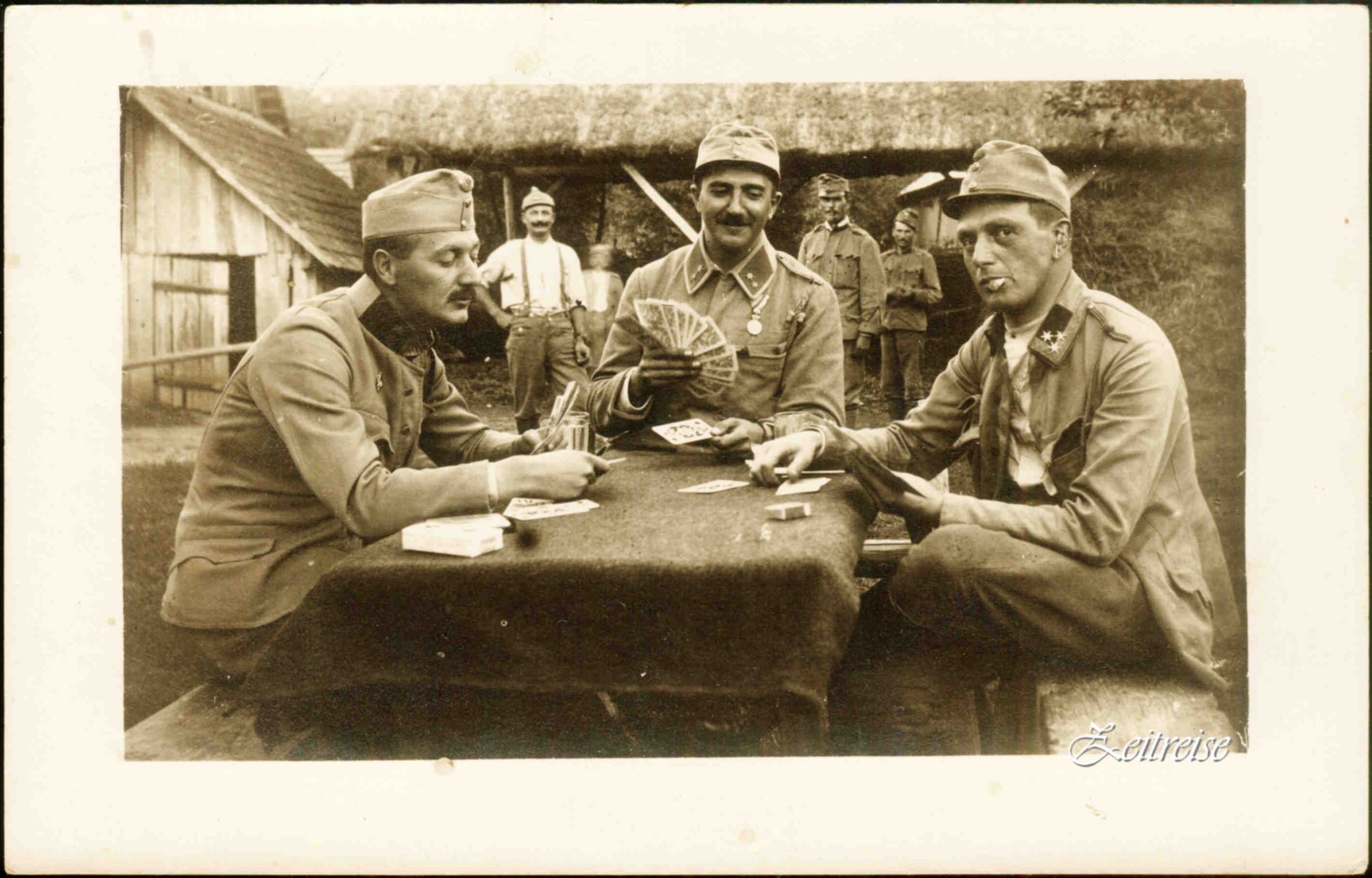 Şi m-am gîndit la Casablanca. Apoi am văzut atîtea zîmbete lărgite pe sub mustaţă şi am zîmbit! Bărbaţii aceştia de meserii diferite, încorsetaţi în hainele sobre de armată, par mai de grabă actori într-o scenă de film, într-o vară liniştită şi destinsă, şi nu într-un război înglodit în noroi, sînge şi moarte.