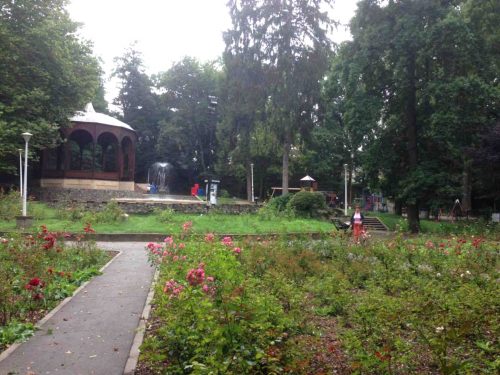 O fetiţă alerga în jurul fîntînii lîngă chioşcul de lemn. O clipă am văzut în cap fetiţa ce ţopăia în sunetul fanfarei, demult, atît de demult că mă întreb uneori de-o fi adevărat, ori doar închipuirea minţii mele. Eminescu a rămas neclintit pe soclu cu ochi goi ţintind trei bazine albastre ce-ar măsura timpul şi versul, de-ar curge apa lor… Doi maiştrii obosiţi, veniţi poate să repare fluieratul robinetelor astupate, cugetă adînc spre nemurirea sufletului, inerţi şi plictisiţi. Din amintirea piticilor cu nasul spart, n-a mai rămas decît soclul gol, opt socluri înşiruite în umbră şi, ironic, pe peretele serei, cineva a desenat o coroană, singurul indiciu că ar fi fost vreo prinţesă în zona, zisă Albă ca Zăpada! Dar s-au ivit toilete ecologice şi e bine, atîta doar că, în spiritul civic şi empatie, s-au aşternut multe urări în vopsea neagră pe uşile lor de plastic! Subarinul după ploaie e tăcut şi frumos, trandafiri grei de apă îşi ţin mirosul ascuns în petale.