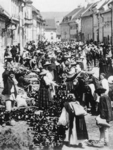 Târg pe Str. N.Bălcescu / Heltauergasse la sfîrşitul sec XIX