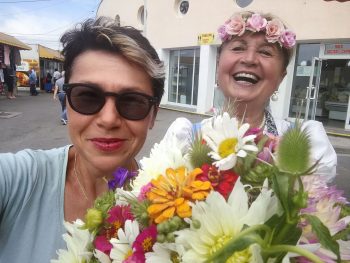 Cu aceeași dragoste și curaj Sara noastră s-a așezat în locul mamei, deși a cunoscut locuri în lume și succesul în carieră. Vine de departe, dar niciodată nu a plecat, căci Casa se poartă în inima și e parte din om. Îmi spune că mama ar fi mândră să o vadă acum aici, în Piață, în locul în care ea însăși a împărțit din roadele grădinii ani la rând. Sara trage căruciorul înflorat pe drumuri hurducate din Turnisor/Neppendorf până în Piața Mare , demnă, cu flori prinse în păr, mereu altele, dar veșnic zâmbitoare. „Gardengirl“ îi scrie pe șorțul primit în dar de la copii și e surprinsă că am remarcat acest detaliu. Mă gândesc că e o eticheta perfectă, ca un logo de firmă.