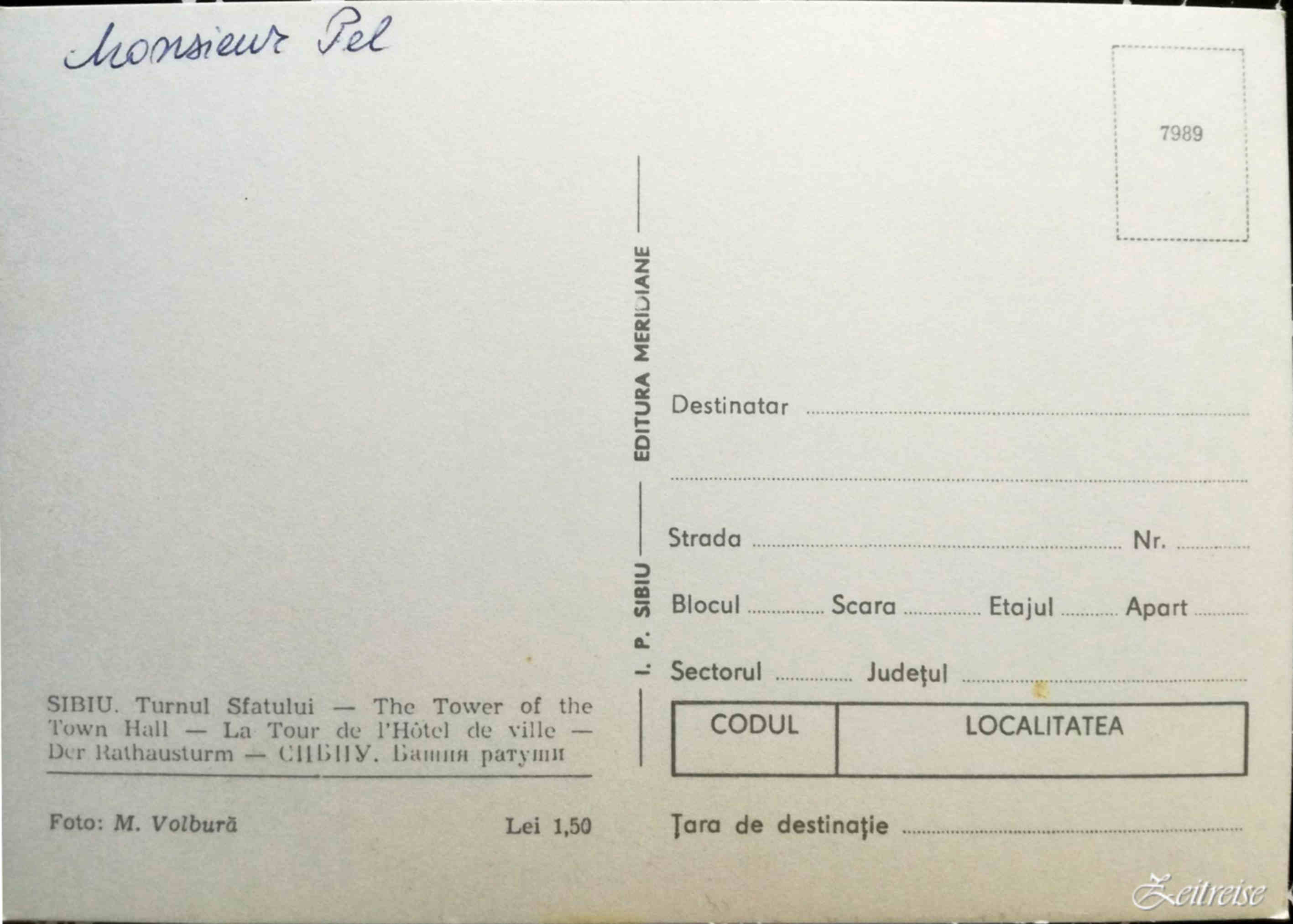 Sibiu „Hotel Continental“ – carte poștală circulată 1984