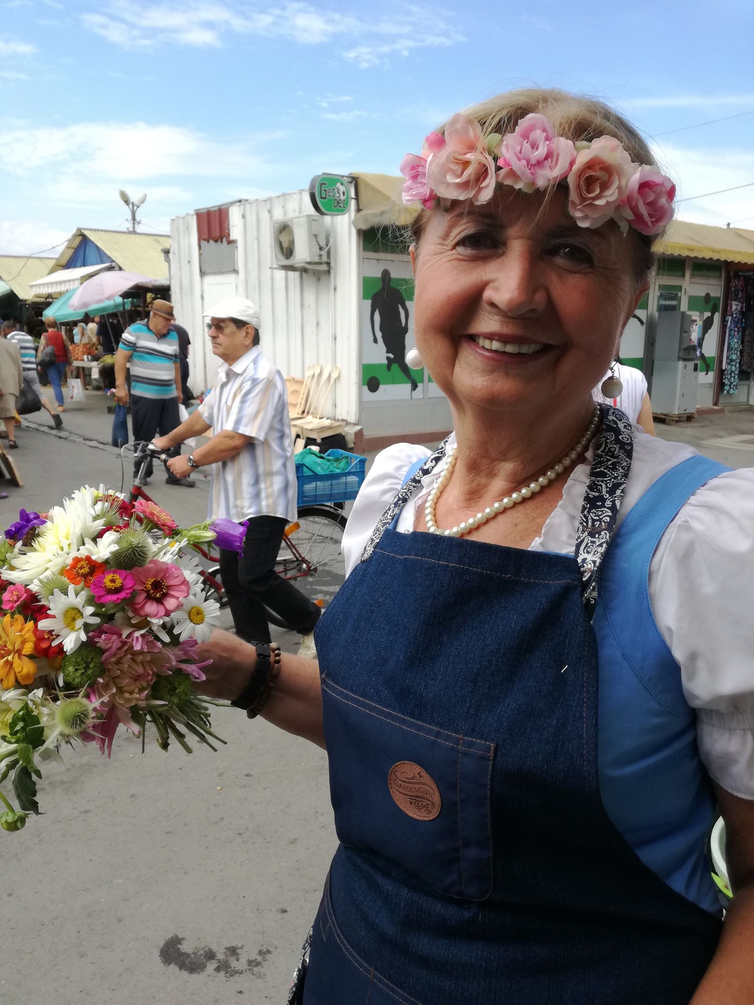 Sara trage un cărucior plin de fericire!Nu poți să nu o remarci pe femeia aceasta frumoasă, plină de viață și veselie! Lumea se oprește și îi vorbește admirativ, i se cer fotografii ca unei vedete celebre, ea zâmbește și le răspunde tuturor „cu drag“, „cu plăcere“! Cu față luminoasă și voce caldă își oferă buchetele meșterite de cu seară. Unii cumpără, alțîi se codesc, dar Sara le oferă la prețuri modice, sau pur și simplu le dăruiește cu drag și modestie.