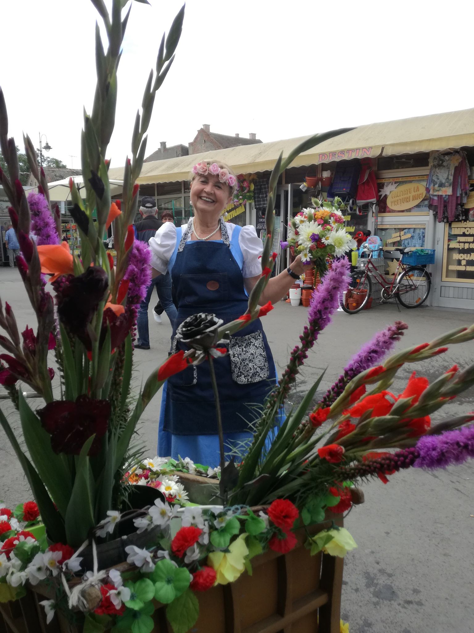 Cu aceeași dragoste și curaj Sara noastră s-a așezat în locul mamei, deși a cunoscut locuri în lume și succesul în carieră. Vine de departe, dar niciodată nu a plecat, căci Casa se poartă în inima și e parte din om. Îmi spune că mama ar fi mândră să o vadă acum aici, în Piață, în locul în care ea însăși a împărțit din roadele grădinii ani la rând. Sara trage căruciorul înflorat pe drumuri hurducate din Turnisor/Neppendorf până în Piața Mare , demnă, cu flori prinse în păr, mereu altele, dar veșnic zâmbitoare. „Gardengirl“ îi scrie pe șorțul primit în dar de la copii și e surprinsă că am remarcat acest detaliu. Mă gândesc că e o eticheta perfectă, ca un logo de firmă.