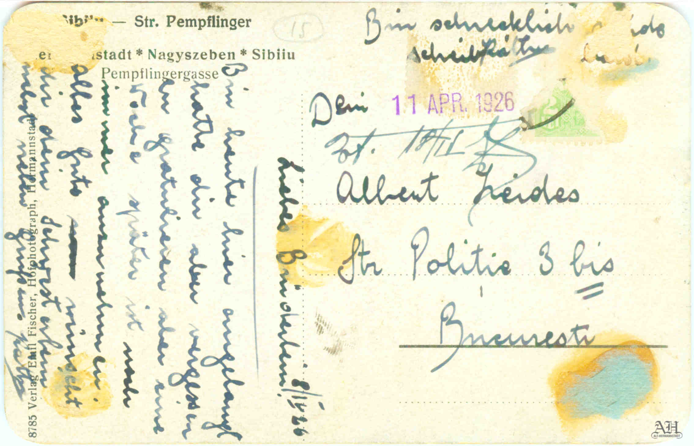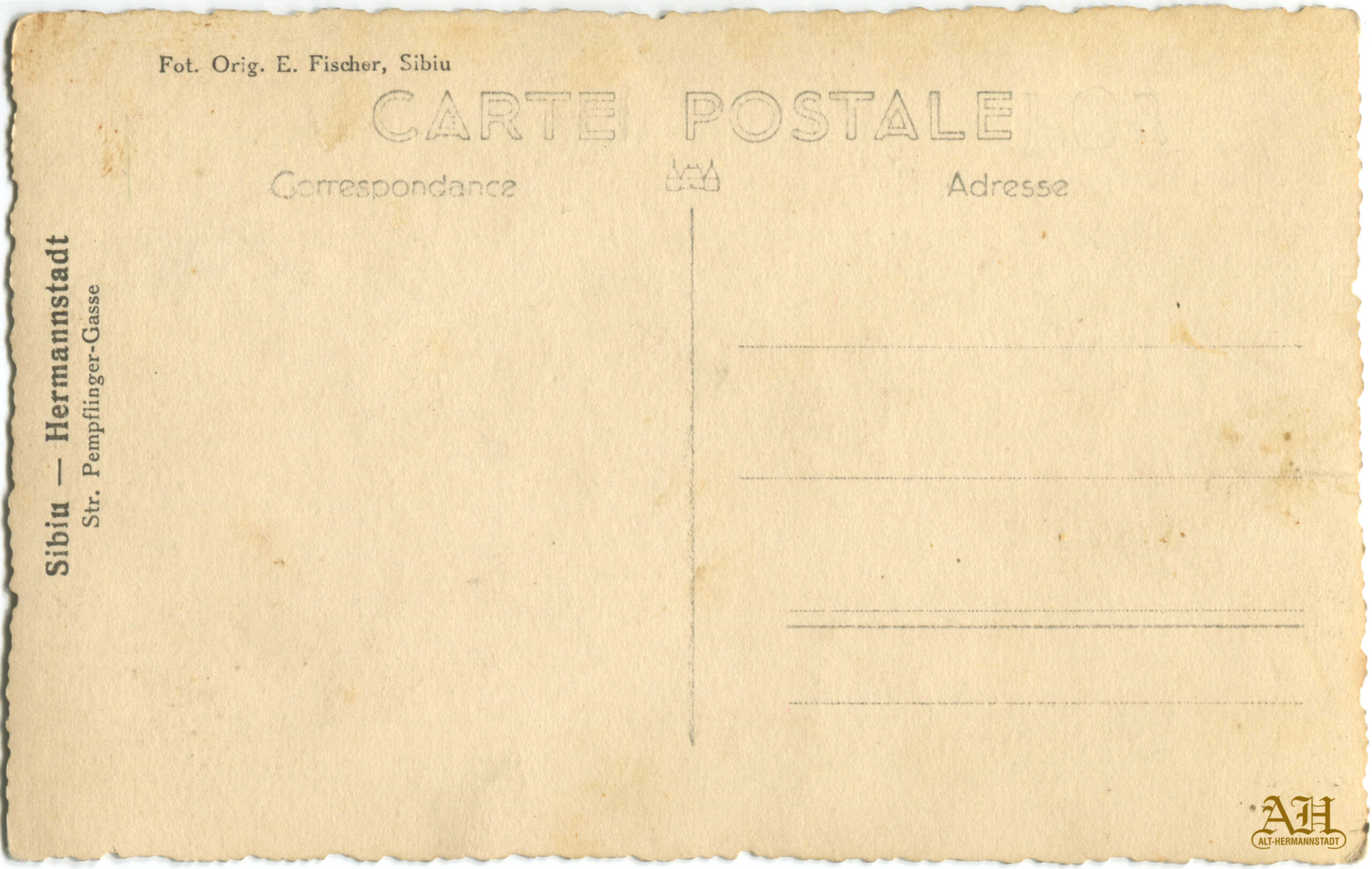Carte poștală tip POST CARD circulată 23 august 1927, editată de Asociația Carpatină din Transilvania – secțiunea Sibiu // S.K.V. Ortsgruppe Hermannstadt. Autorul fotografiei: Josef Fischer.