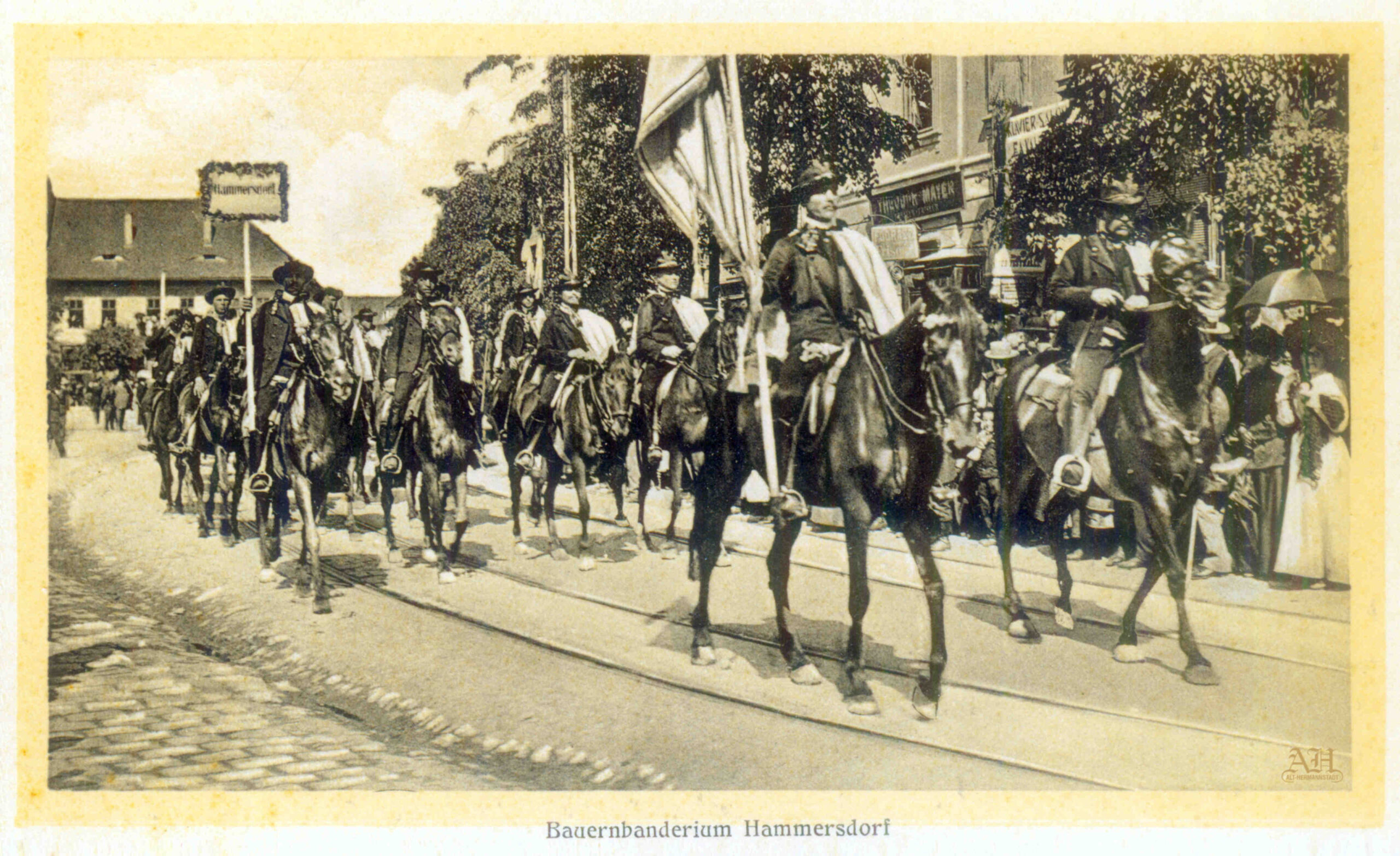 Fotografii realizate de Emil Fischer cu ocazia ceremoniei de investitură a episcopului Bisericii Evanghelice de Confesiune Augustană din România Dr. Viktor Glondys în ziua de 29 mai 1933 la Sibiu. Primele patru poze au fost făcute pe str. Mühlgasse, astăzi Șoseaua Alba Iulia, în apropiere de intersecția cu str. Andrei Șaguna și str. Dealului. Trăsura episcopului evanghelic Glondys a fost escortată de un cortegiu alcătuit din călăreți sași. Ultima fotografie a fost realizată în Piața Huet la intrare în curtea Bisericii Evanghelice. (Fotografii din arhiva grupului de Facebook Alt-Hermannstadt)