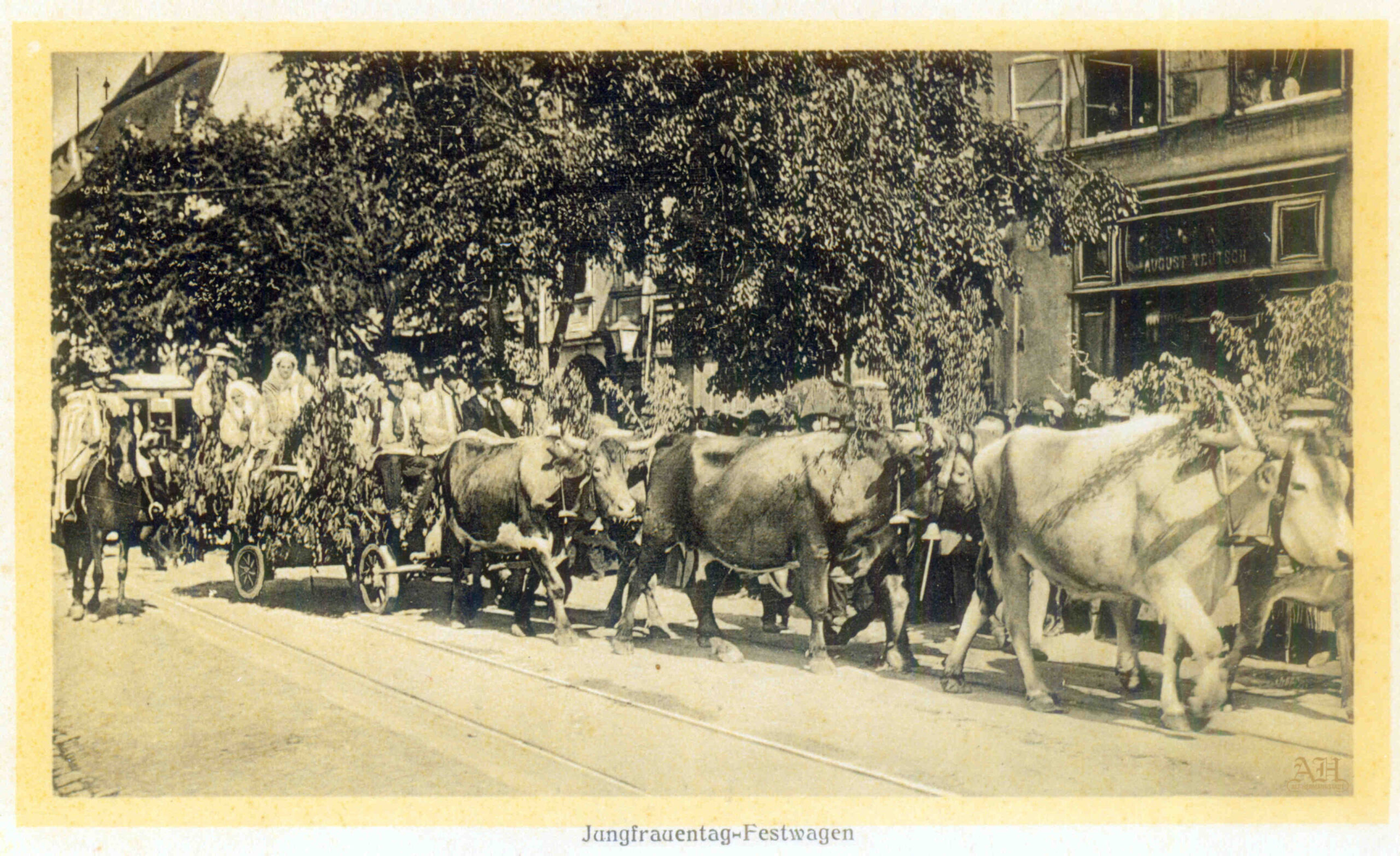Carte poștală nr. 419 tipărită la tipografia sibiană Kunstanstalt Jos. Drotleff 1917 – fotografie realizată de Emil Fischer. Târgul de bivoli se afla în cartierul Terezian // Theresianum. -