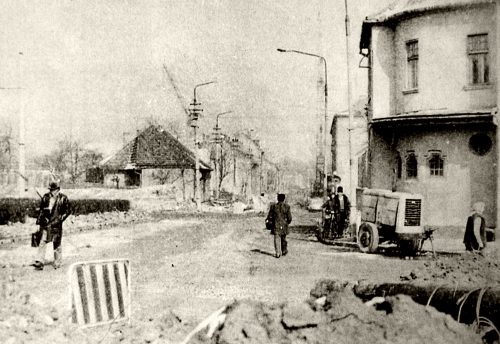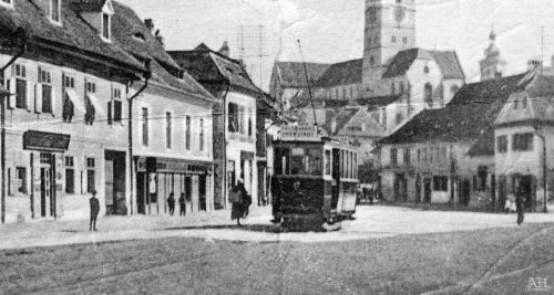Instantaneu cu tramvai pe strada Turnului // Saggasse // Kistoronyi utca realizat în anii 1920.