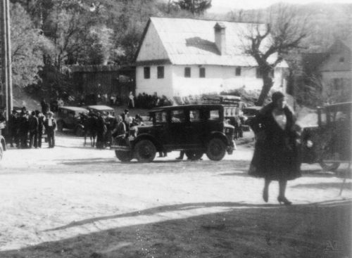O fotografie deosebită din arhiva personală, realizată în perioada interbelică la poalele cetății (bisericii fortificate) din Cisnădioara // Michelsberg // Kisdisznód.