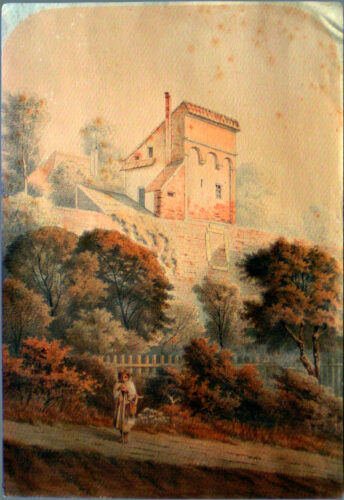 „Südwestliche Ecke der Michelsberger Burg“ // „Colțul sud-vestic al cetații Cisnădioara“ ~ Josef Fischer