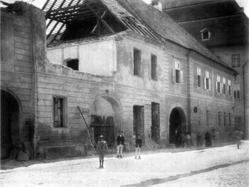 „Casa Sühler situată pe strada Reissenfelsgasse colț cu strada Sporergasse înainte de demolare.”