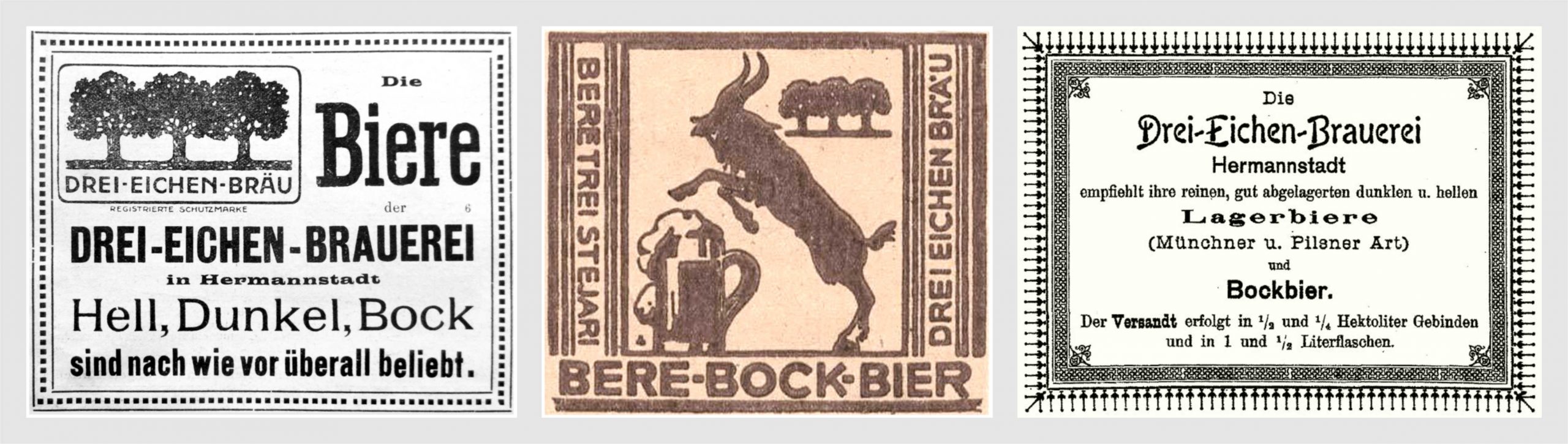 Există o ilustrație după o pictură realizată de August Sporner 1899 în care se văd clădirile fabricii de bere Trei Stejari, grădina de vară a restaurantului și pe partea dreaptă trei stejari. De la acei 3 stejari, aflați pe dâmbul de pământ lângă actuala str. Șerbota, se trage denumirea străzii Drei Eichen Strasse // Șoseaua Trei Stejari și numele fabricii de bere Drei Eichen Brauerei // Fabrica de bere Trei Stejari! Penultimul stejar a fost tăiat 1969 cu ocazia modernizării străzii Bâlea.Pe locul unde s-a construit fabrica de bere Trei Stejari 1887 funcționa deja o cârciumă, cum ne dezvăluie cărțile de adrese din 1885 și 1887. La capitolul „Wirtsgeschäfte”, cârciume/ cârciumari sunt listați: