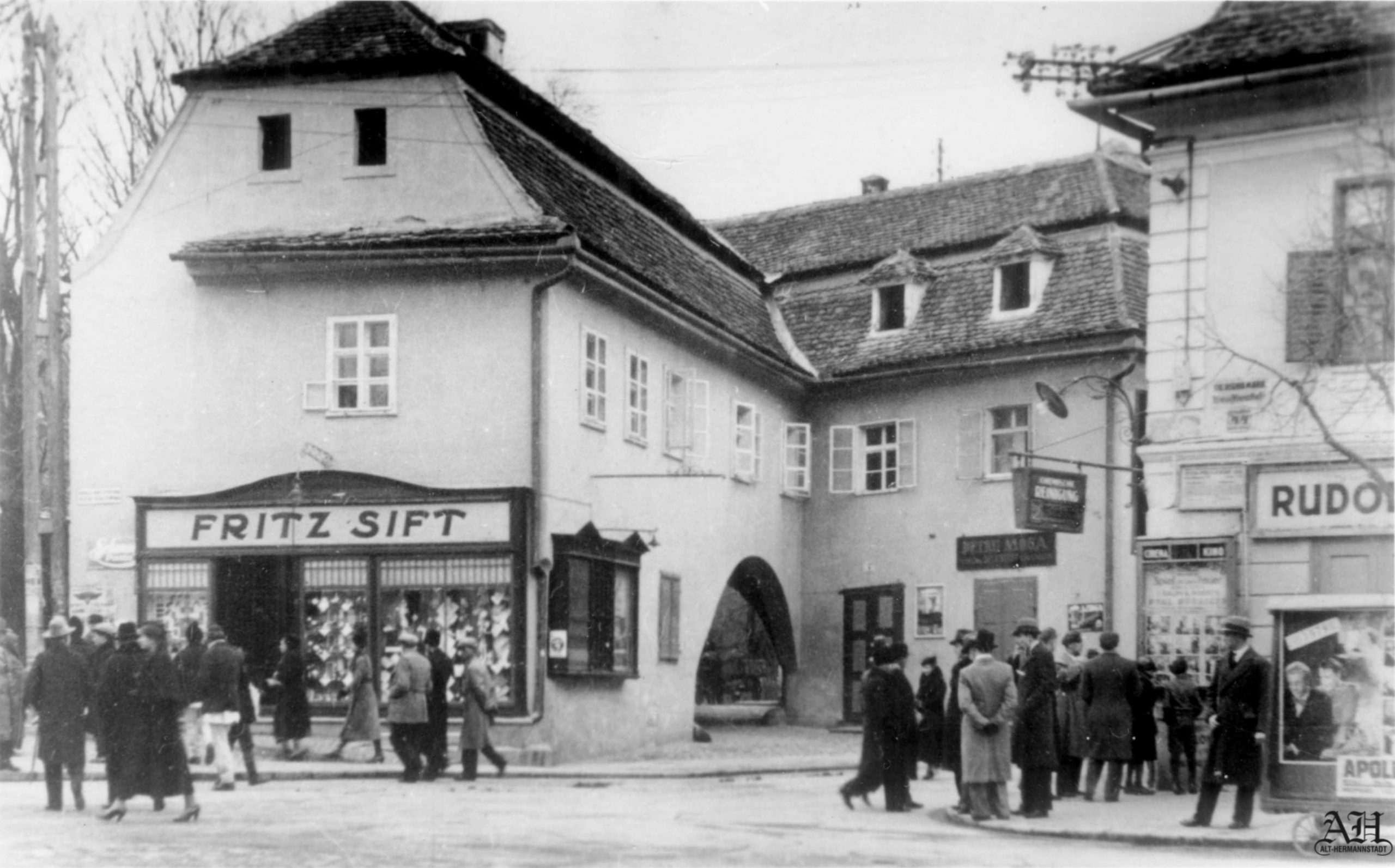„Casa Sühler situată pe strada Reissenfelsgasse colț cu strada Sporergasse înainte de demolare.”