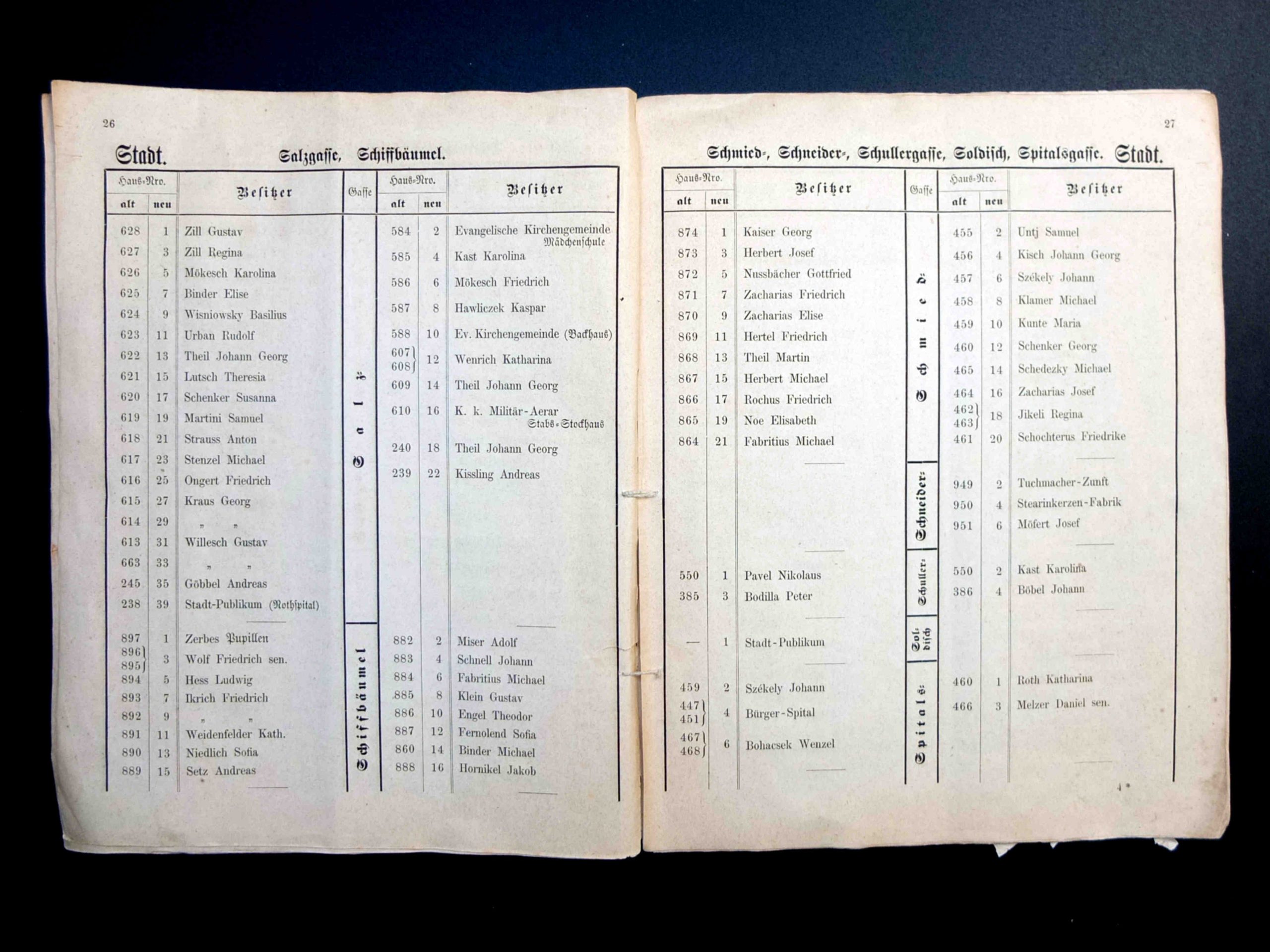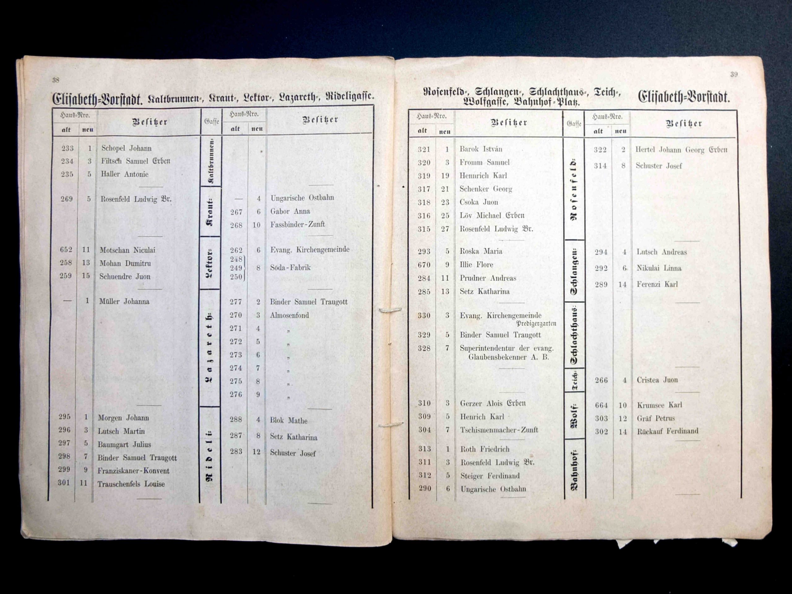 Proprietarii Fabricii de bere Trei Stejari // Drei Eichen Brauerei sunt listați în cartea de adrese din 1892, la capitolul „ Brauereibesitzer” (proprietar de fabrică de bere): Friedrich Jikeli & Johann Hager – Dreieichenstrasse 11 (Brauereibesitzer).