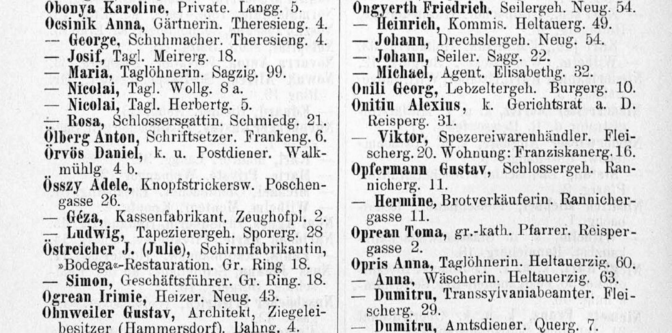 În cartea de adrese, 1911, directorul comercial ( Geschäftsleiter ) Victor Onițiu este listat cu adresa de domiciliu la strada Fleischergasse 29 // Măcelarilor 29, ( azi, strada Mitropoliei 27 ), vis-à-vis de băcănie!