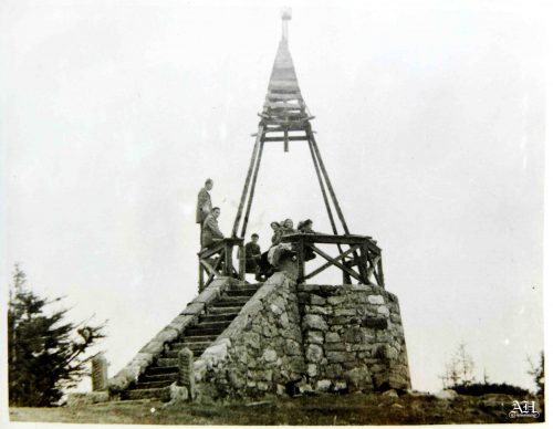 Observatorul Conradt // Conradtwarte de pe Oncești a fost inaugurat în anul 1902 în amintirea lui Karl Conradt, prim președinte al Asociației Carpatine din Transilvania // Siebenbürgischer Karpatenverein S.K.V.. (decedat 1901) și principal întemeietor al stațiunii Păltiniș // Hohe Rinne. (Fotografie din anii 1950 din arhiva familială)