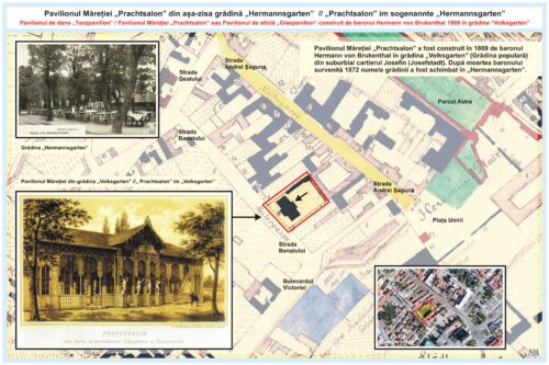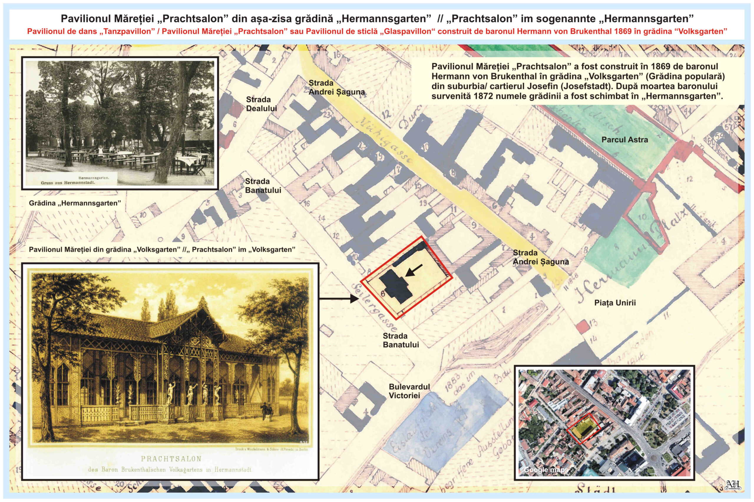 Pavilionul Măreției „Prachtsalon”, cunoscut și sub denumirea de Pavilionul de dans „Tanzpavillon” sau Pavilionul de sticlă „Glaspavillon” a fost construit în anul 1869 de baronul Hermann von Brukenthal în grădina „Volksgarten” (Grădina populară) din suburbia/ cartierul Josefin (Josefstadt). După moartea baronului numele grădinii a fost schimbat în „Hermannsgarten”.