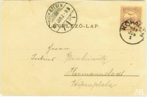 Cetatea Rupea și o parte din Piață / „Repser Burg – Ein Teil des Marktplatzes. Carte poștală tip LEVELEZÖ-LAP circulată 1901, editată de Editura Hans Gross din Rupea / Verlag von Hans Gross, Reps.