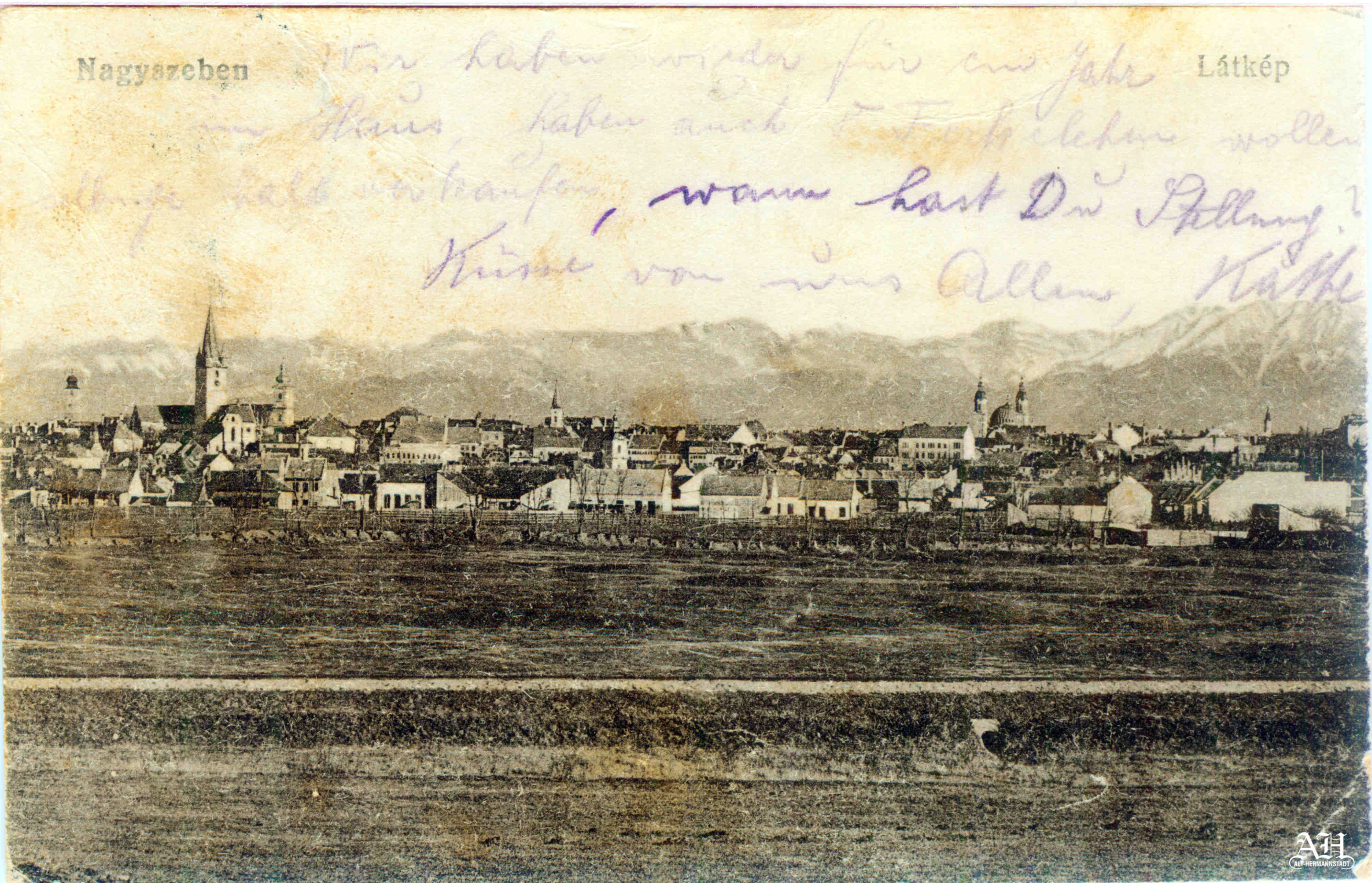 Alt-Hermannstadt // Sibiu // Nagyszeben „Hermannstadt ~ Panorama“ // „Sibiu ~ panoramă“ / Sibiu ~ panoramă // Hermannstadt ~ Panorama // Nagyszeben ~ Látkép. Sibiu privit dinspre nord-vest / Carte poștală circulata anii 1910. 0