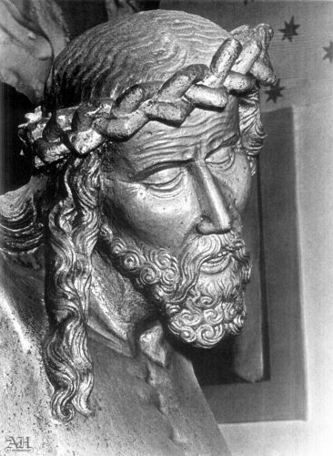 Grupul statuar „Isus pe cruce” din capela „Sfânta Cruce” a fost realizat în 1417 dintr-un singur bloc de piatră de sculptorul austriac Petrus Lantregen (Peter Landregen) pentru mănăstirea şi biserica Dominicană aflată în fața Porții Elizabeta // Elisabethtor / Porții Gușteriței. La picioarele răstignitului Isus se află Sfînta Fecioară Maria și Sfîntul Apostol Ioan.