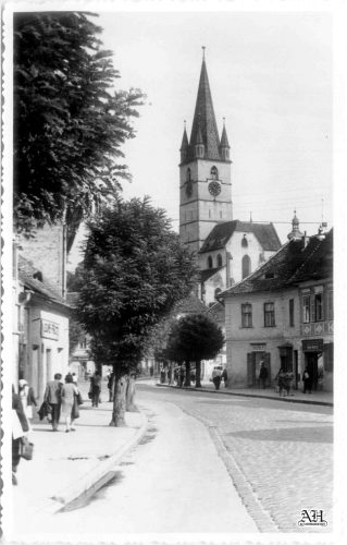 Strada Turnurlui din Sibiu, fotografiată în jurul anului 1970, după desființarea liniei de tramvai Gara Sibiu – Piața Cibin în 1967. Reproducerea fotografică, realizată de dl. Otto Wolff, se află în colecția privată Wolff.