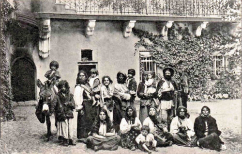 „Zigeunergruppe im Innenhof des alten Rathauses / Altemberger Haus” // „Grup de țigani în curtea Primăriei vechi / Casa Altemberger”